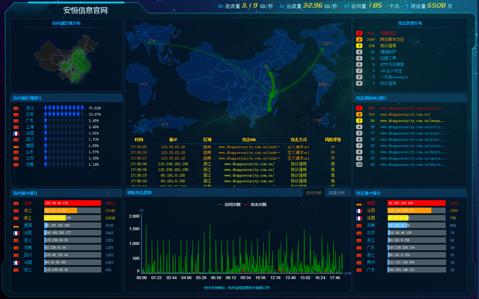 “事前监测+事中防护+事后追溯”的一站式SaaS云安全服务,解决上级监管通报、篡改、DDoS攻击、数据泄露、0day攻击、钓鱼等安全问题,是符合等保三级要求的云安全防护平台,自发布以来先后为G20杭州峰会、世界互联网大会、一带一路、上合峰会等大会官网提供安全保障。